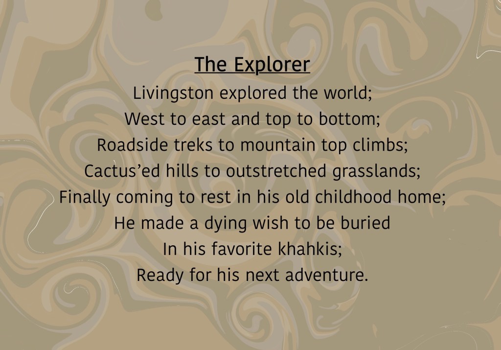 Love this ! I can see Livingston trotting through the wild in his proper khakis!