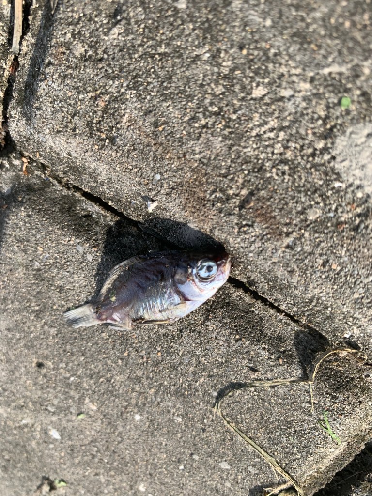 I keep encountering fish upon my morning walks. Different fish. Different locations. But…fish. It’s strange and it takes my mind to strange paces too…