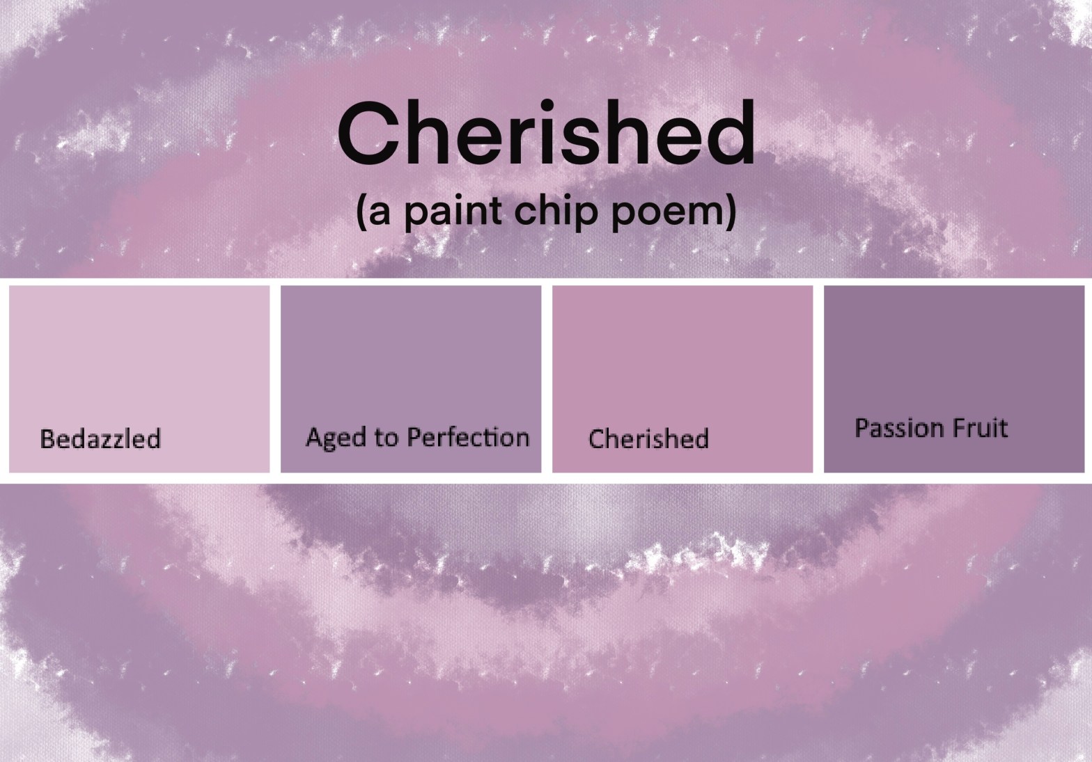 - Cherished (a Paint Chip Poem)No Love For Fatties invites us to join in on her Paint Chip Poetry by creating our own poem inspired by the paint chip colorsContinue reading “Cherished (a Paint Chip Poem)”