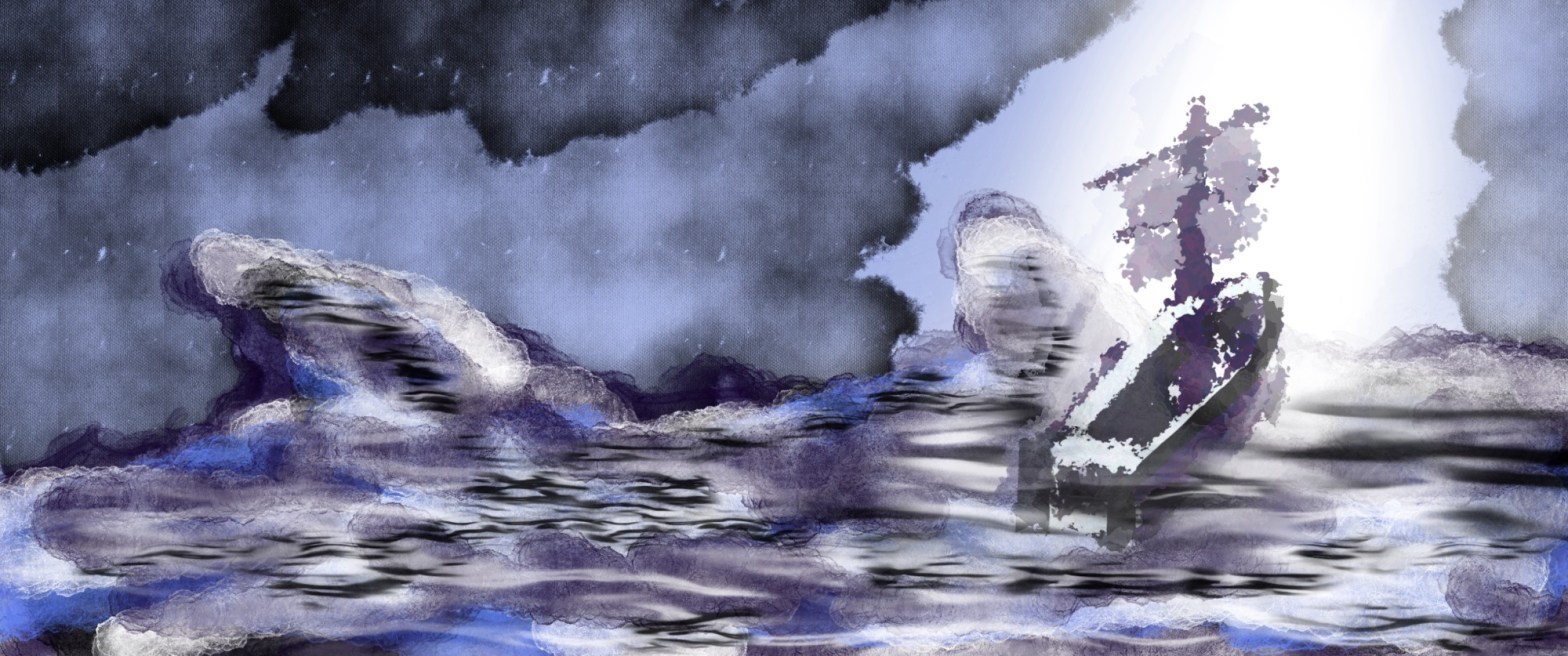 I love the colors in of the boat and sky and sea and the theme of the poem. I’m so grateful God’s hands are on the helm!