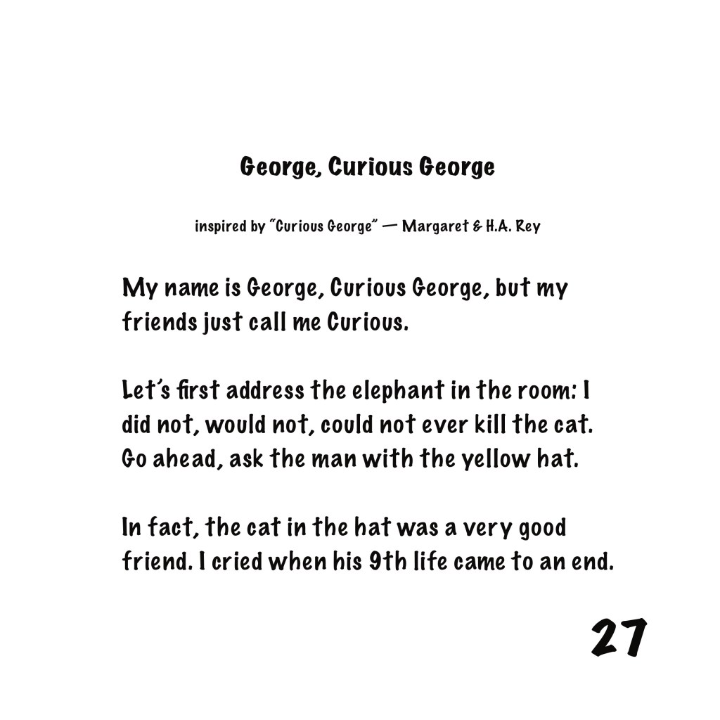 Pick up a copy of this silly collection dedicated to the child in all of us and enjoy with a loved one. Or stick around as I’ll continue posting each illustrated poem one letter at a time throughout the month of April. Have fun and stay silly!