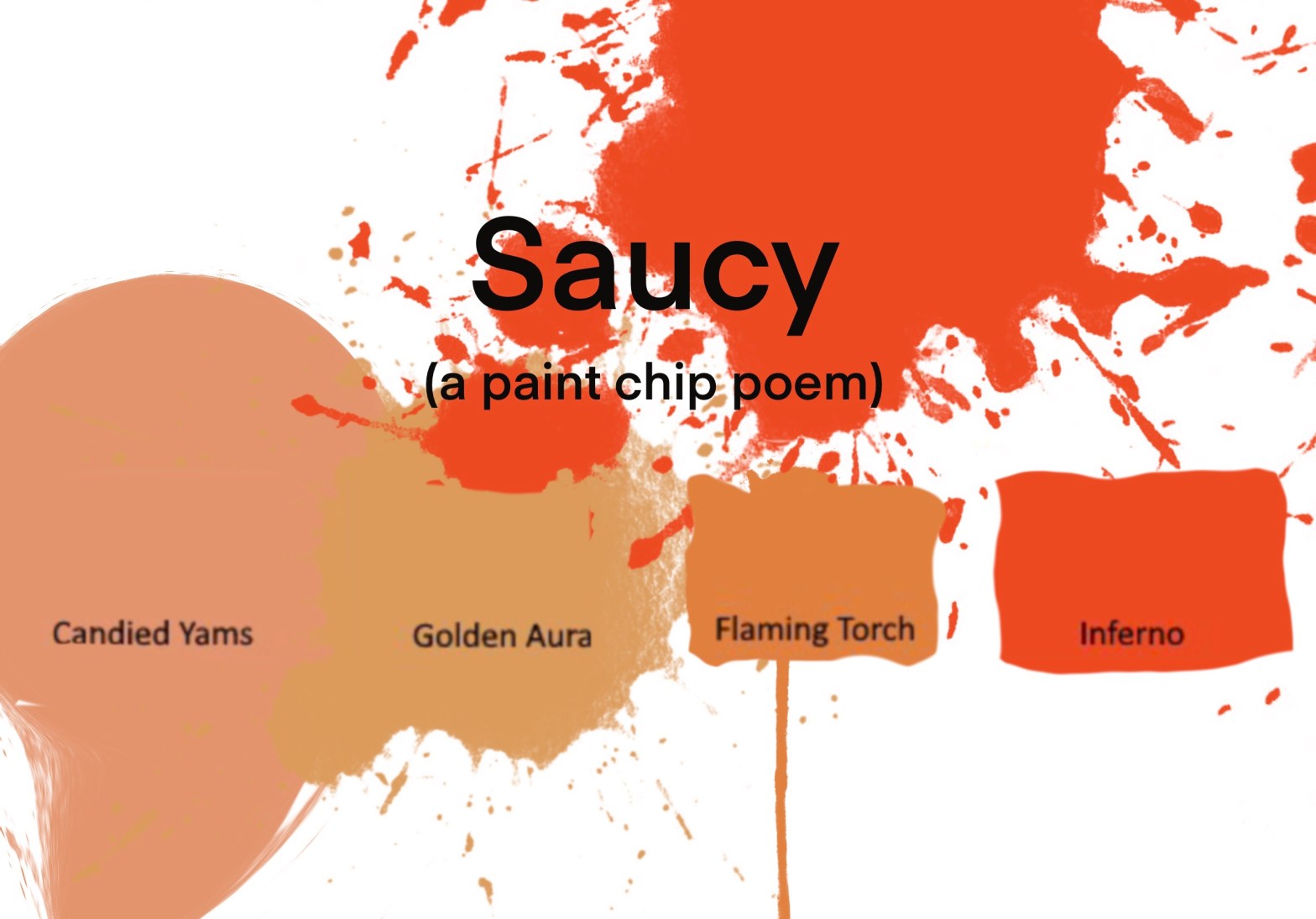 - Saucy Talk (a Paint Chip Poem)No Love For Fatties invites us to join in on her Paint Chip Poetry by creating our own poem inspired by the paint chip colorsContinue reading “Saucy Talk (a Paint Chip Poem)”